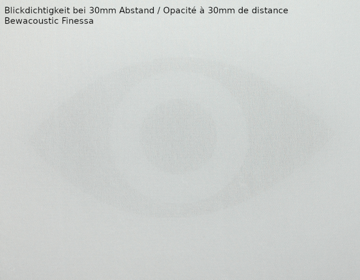 Der Leichte. Die feine Struktur lässt unseren Premium Akustikstoff Finessa in den Hintergrund treten. Etwas weniger blickdicht, dafür akustisch sehr transparent. Wie immer sind dunklere Farbtöne etwas blickdichter.